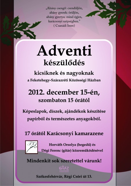 Galériák > Események, programok galériája > Karácsonyi készülődés Feketehegy-Szárazréten