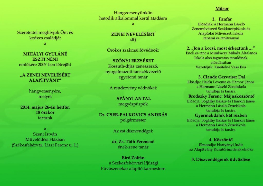 Galériák > Események, programok galériája > Zenei nevelésért díj meghívó 2014