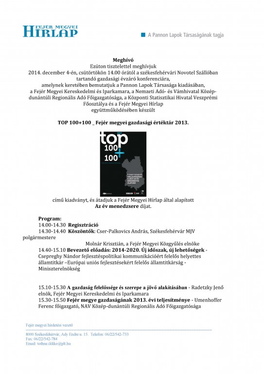 Galériák > Események, programok galériája > TOP 100 Meghívó