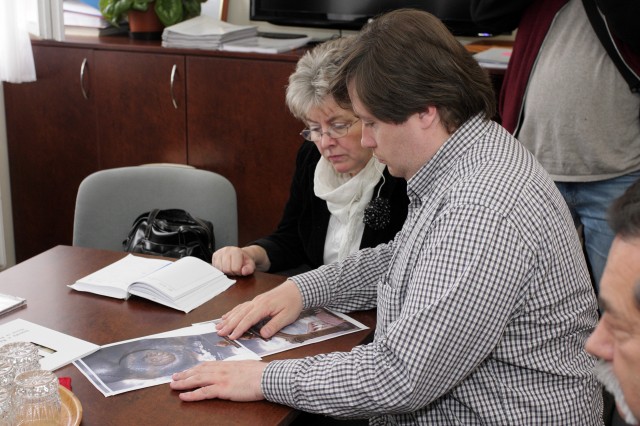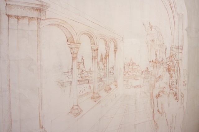 Galériák > Események, programok galériája > Polgármester úr megtekinti a készülő freskót a Vörösmarty iskolában