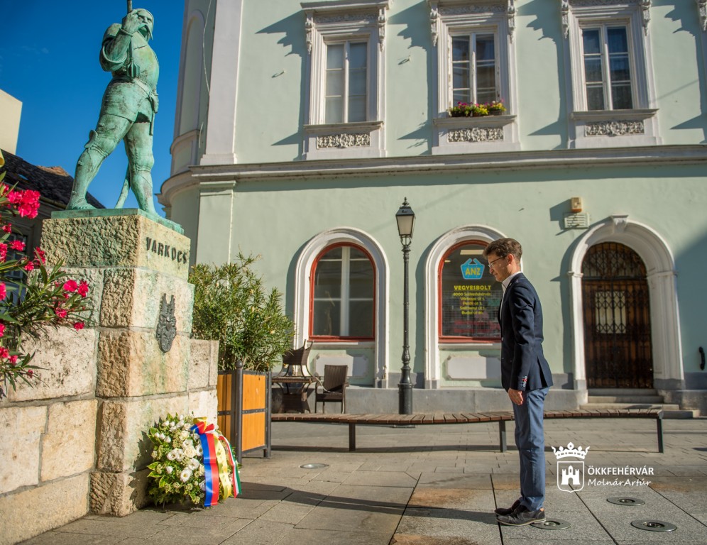 Galériák > Események, programok galériája > Néma koszorúzás a Varkocs szobornál