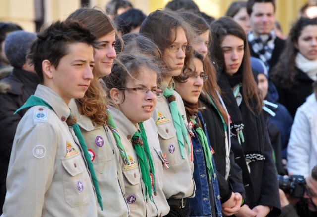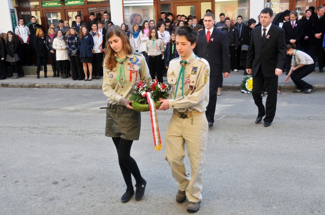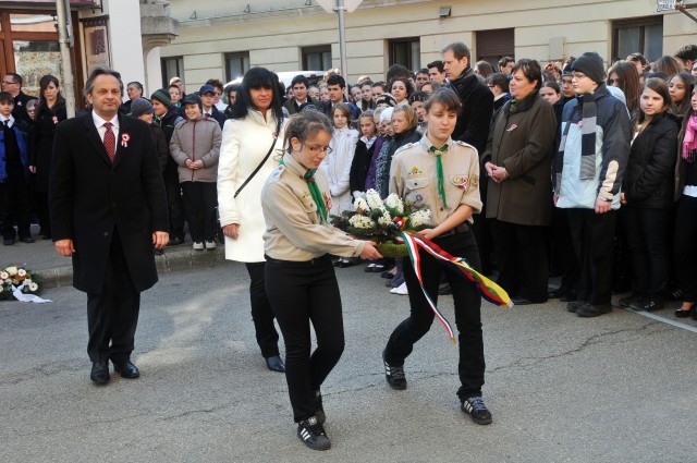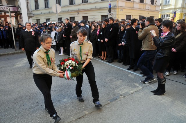Galériák > Események, programok galériája > Március 15-éhez kapcsolódó ünnepségek > Fekete Sas szálloda, március 15-i koszorúzás