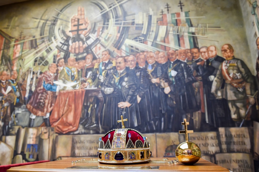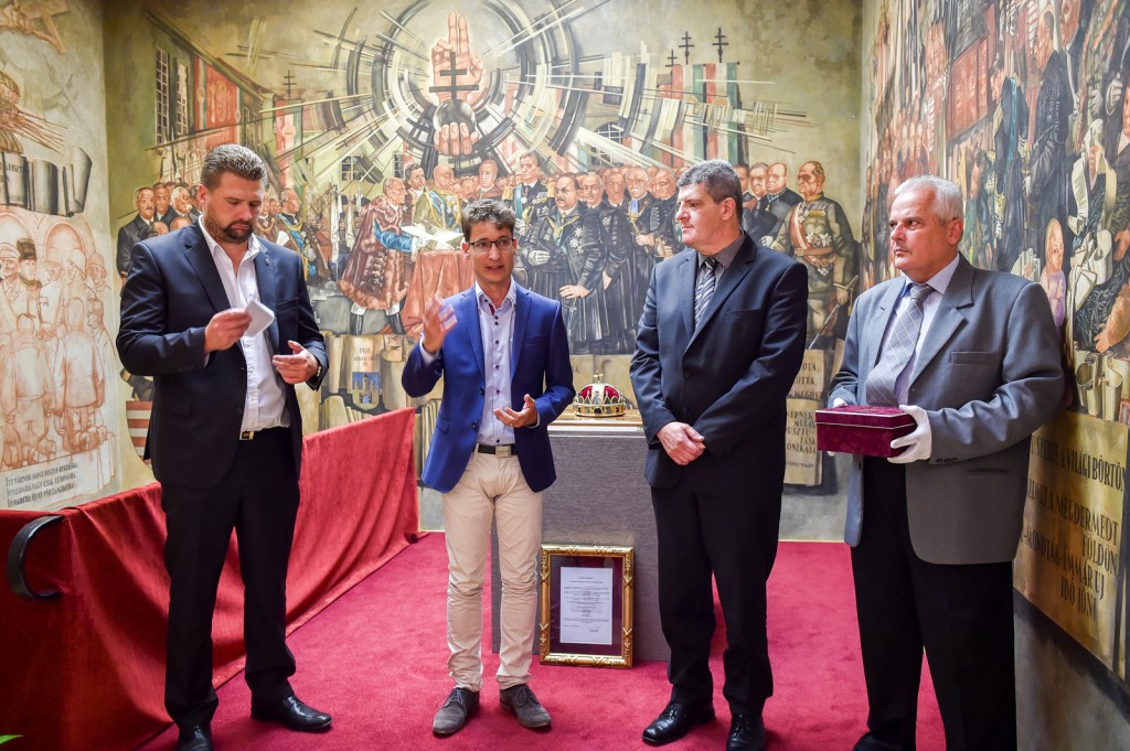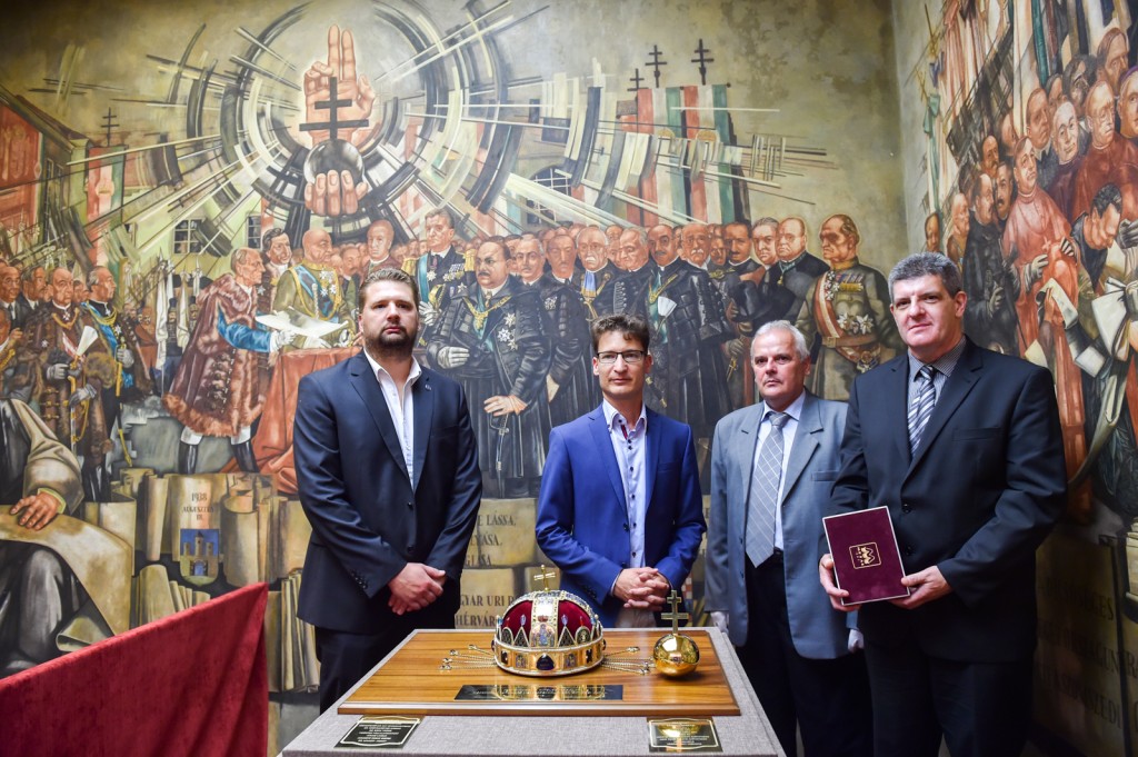 Galériák > Események, programok galériája > Országalma másolata, történelmi zászlók és díszpolgári gyűrű
