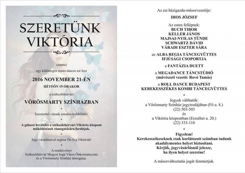 Galériák > Események, programok galériája > Szeretünk Viktória! - jótékonysági est a színházban 2016. nov. 21.