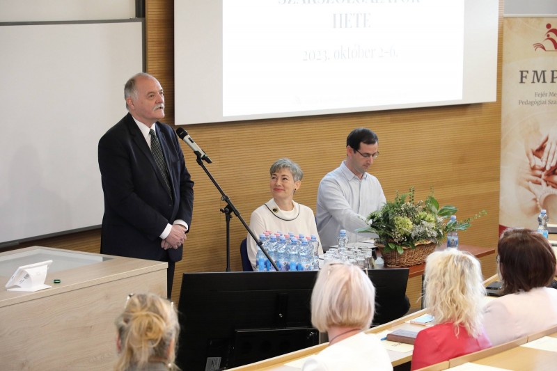 A konferenciának helyet adó Óbudai Egyetem Alba Regia Műszaki Kar dékánja, Prof. Dr. Györök György köszöntőjében elmondta: nagy örömmel fogadták a felkérést és működnek együtt a Fejér Vármegyei Pedagógiai Szakszolgálattal. Beszédében felhívta a figyelmet arra, hogy a fizikai közelségen túl egyfajta spirituális, szellemi kötődés is kialakult az intézmények között. Megismerték egymás tevékenységét, és nyilvánvalóvá vált, hogy közös cél az oktatás és a fiatalok ügye. A dékán további sikeres, színvonalas munkával eltöltött éveket kívánt a szakszolgálatnak.
