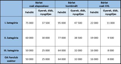 A 2024/2025-ös szezon bérletárai:
