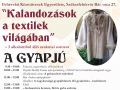 A Kalandozások a textilek világában című szakmai nap október 15-én, szombaton 10.00 órakor kezdődik a Kézművesek Házában. A gyapjú lesz a központi téma, előadást tartanak a gubaszövés rejtelmeiről, majd a kunhímzésről. Az ebédszünetet gyakorlati bemutatók követik, be lehet kapcsolódni a gubaszövésbe és a kunhímzésbe, ez utóbbi munkához 20-30 centiméteres saját felvetett keretet és leverővillát kérnek hozni a résztvevőktől.