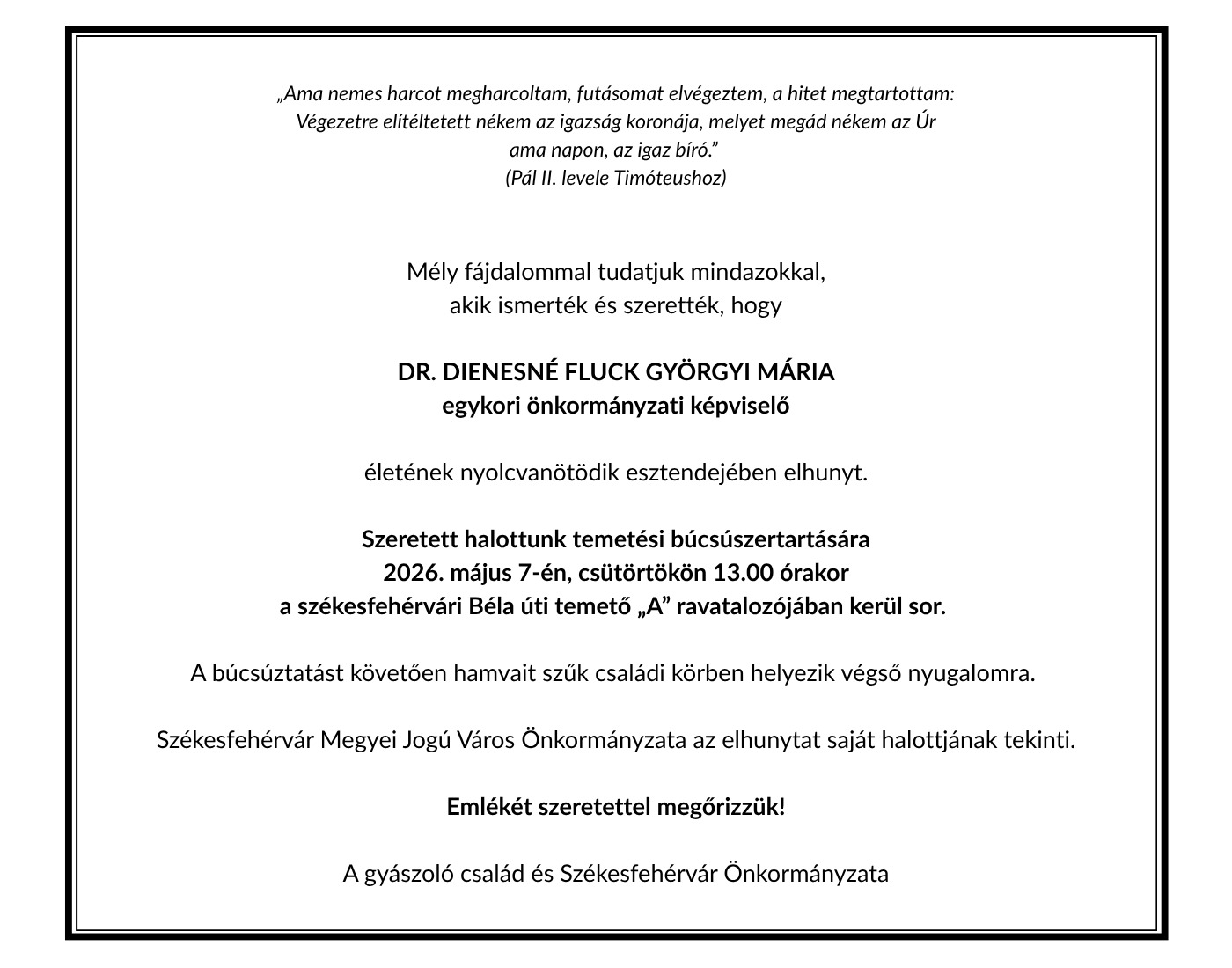 GYÁSZHÍR - 2026. április 23. (csütörtök)